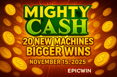 The wait is almost over. On November 15, 2025, get ready to experience the Mighty Cash Revolution exclusively at EPICWIN. With 20 New Machines ready to deliver Bigger Wins, this is the event that will set new standards for excitement, innovation, and celebration.